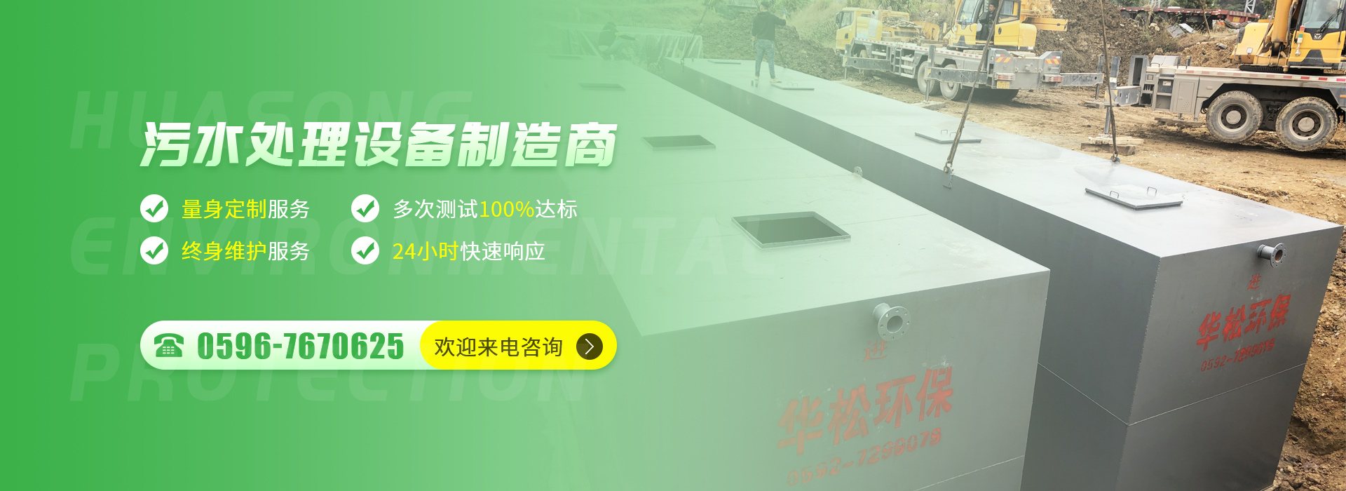 ??廈門市華松環保設備有限公司(福建省華松環保科技有限公司)是一家專業從事污水處理設備的研發、設計、制造、施工為一體的環保設備高新科技企業。公司擁有兩個生產基地廈門和漳州,華松環保有雄厚的技術實力聯合多家學府環保學院研發機構,建立開放的科技合作與技術創新體系?,F已研發生產出多系列的環保污水設備產品:玻璃鋼機械纏繞化糞池、一體化GRP預制泵站/雨水回收系統、一體化污水處理設備、自動不銹鋼隔油器/玻璃鋼隔油池、一體化FRP儲罐、玻璃鋼噴淋塔、玻璃鋼夾砂管道、油水油煙分離凈化設備等系列產品。產品暢銷國內外,廣范應用于市政、生活污水、食品、醫藥、陶瓷、石材、化工、印染、電鍍、釀酒等污水處理設備領域,公司以高質量的產品和服務贏得了廣大客戶的高度認可和良好的市場信譽。
